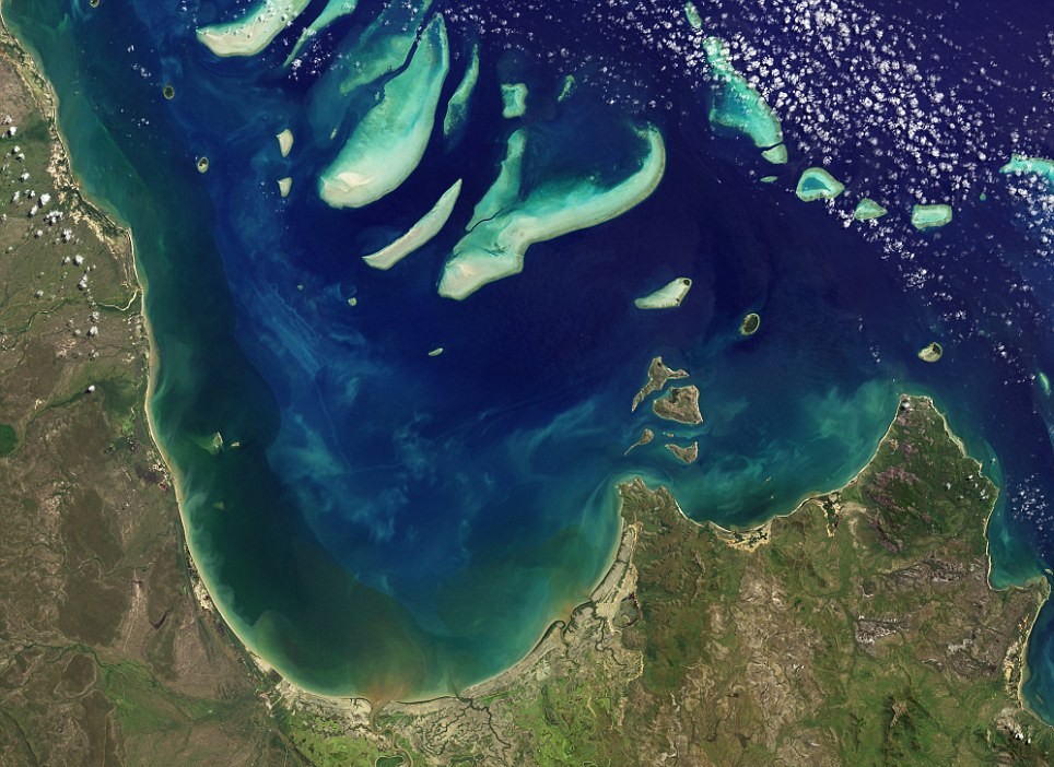 Φωτογραφία του κόλπου της Πριγκίπισσας Σαρλοτ στην Αυστραλία. Φωτογραφία από την 20η Απριλίου από τον δορυφόρο NASA/USGS Landsat 8