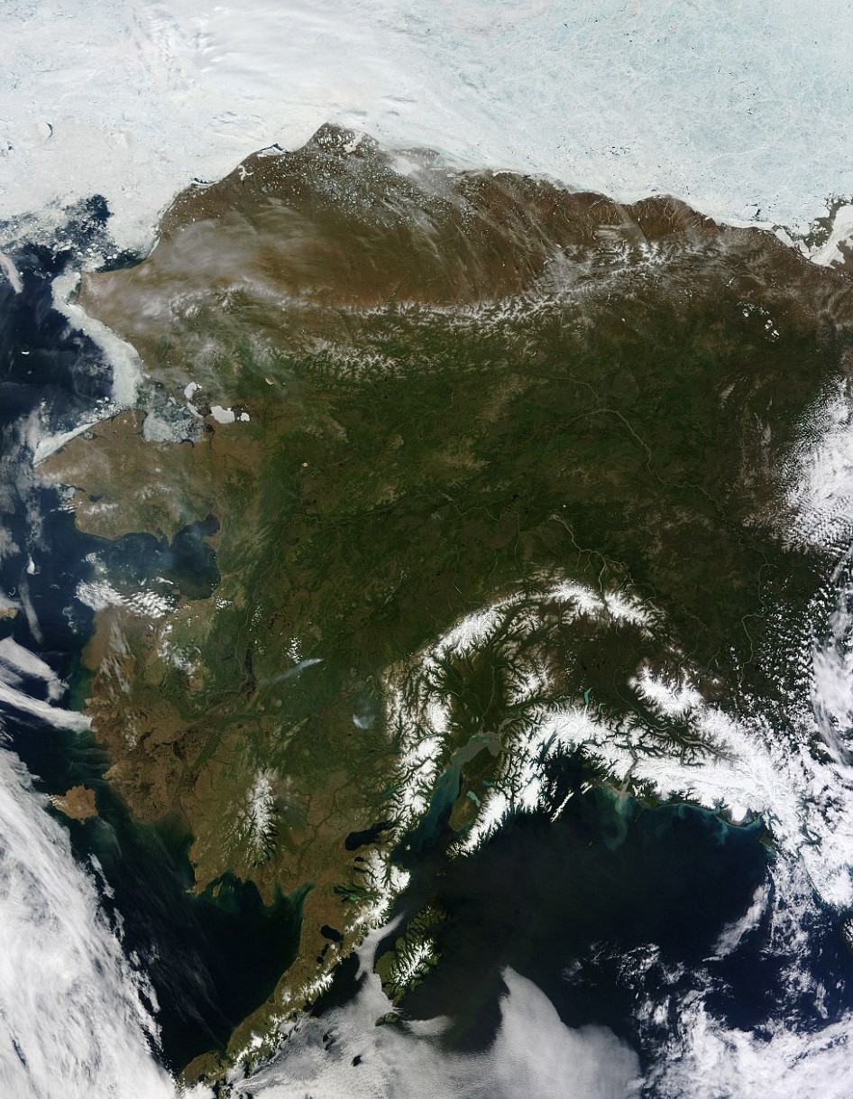 Η Αλάσκα μια από τις σπάνιε φορές που δεν υπάρχουν σύννεφα. Φωτογραφία του δορυφόρου Terra της NASA στης 17 Ιουνίου