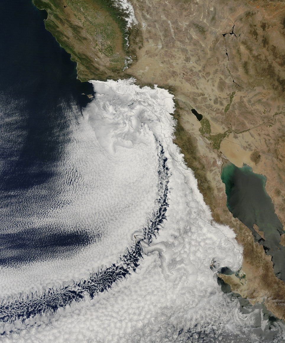 Σύννεφα προσεγγίζουν τις ακτές της Καλιφόρνια. Φωτογραφία του δορυφόρου Terra της NASA στης 14 Απριλίου