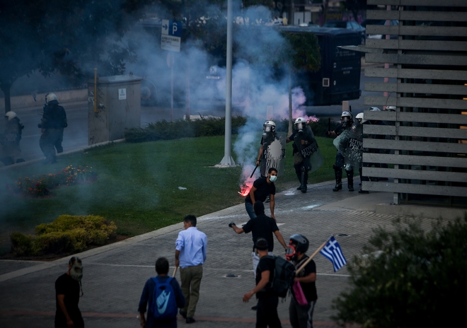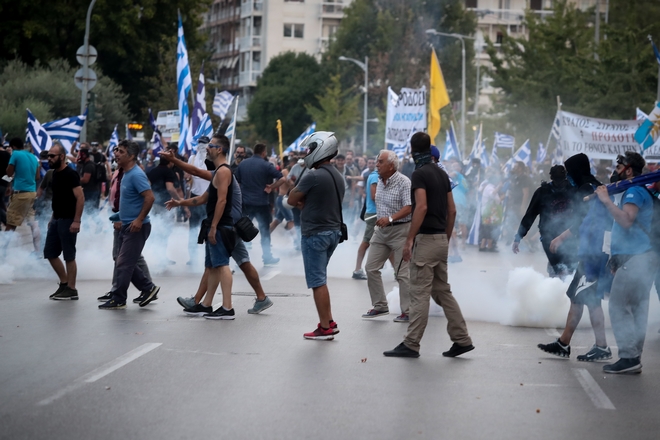 Ομάδα εθνικιστών που συμμετείχε σε συλλαλητήριο για την Μακεδονία, αποσπάστηκε από την πορεία και επιχείρησε να προσεγγίσει το Δημαρχείο. Απωθήθηκαν με χημικά και βόμβες κρότου-λάμψης. Μικροένταση και στη νότια πύλη της ΔΕΘ.