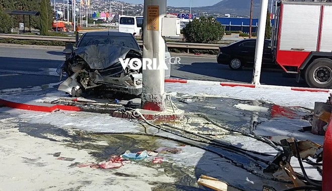 Από την σφοδρή πρόσκρουση πήρε φωτιά το ΙΧ αυτοκίνητο και η αντλία υγρών καυσίμων, ενώ άμεσα σε λειτουργία τέθηκαν τα συστήματα πυρασφάλειας του καταστήματος.