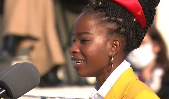 Η Amanda Gorman, μια 22χρονη Αφροαμερικανή ποιήτρια, διάβασε ένα πρωτότυπο ποίημα, μετά την ορκωμοσία του Προέδρου Μπάιντεν στο ανώτατο αξίωμα των Ηνωμένων Πολιτειών.
