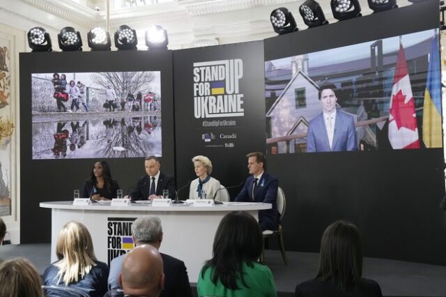 Η Πολωνία φιλοξένησε τη διάσκεψη των δωρητών προκειμένου να βοηθήσει τους περισσότερους από 11 εκατομμύρια ανθρώπους που αναγκάστηκαν να εγκαταλείψουν τις εστίες τους στην Ουκρανία λόγω της εισβολής της Ρωσίας και να καταφύγουν σε γειτονικές χώρες ή τους εσωτερικά εκτοπισμένους.