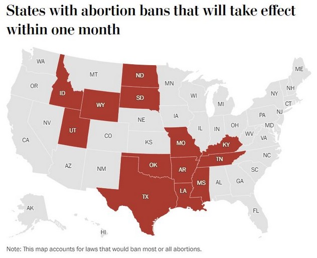 Δεκατρείς πολιτίες έχουν ήδη ψηφίσει τους σχετικούς νόμους που θα τους επιτρέψει να απαγορεύσουν ρητά την άμβλωση.