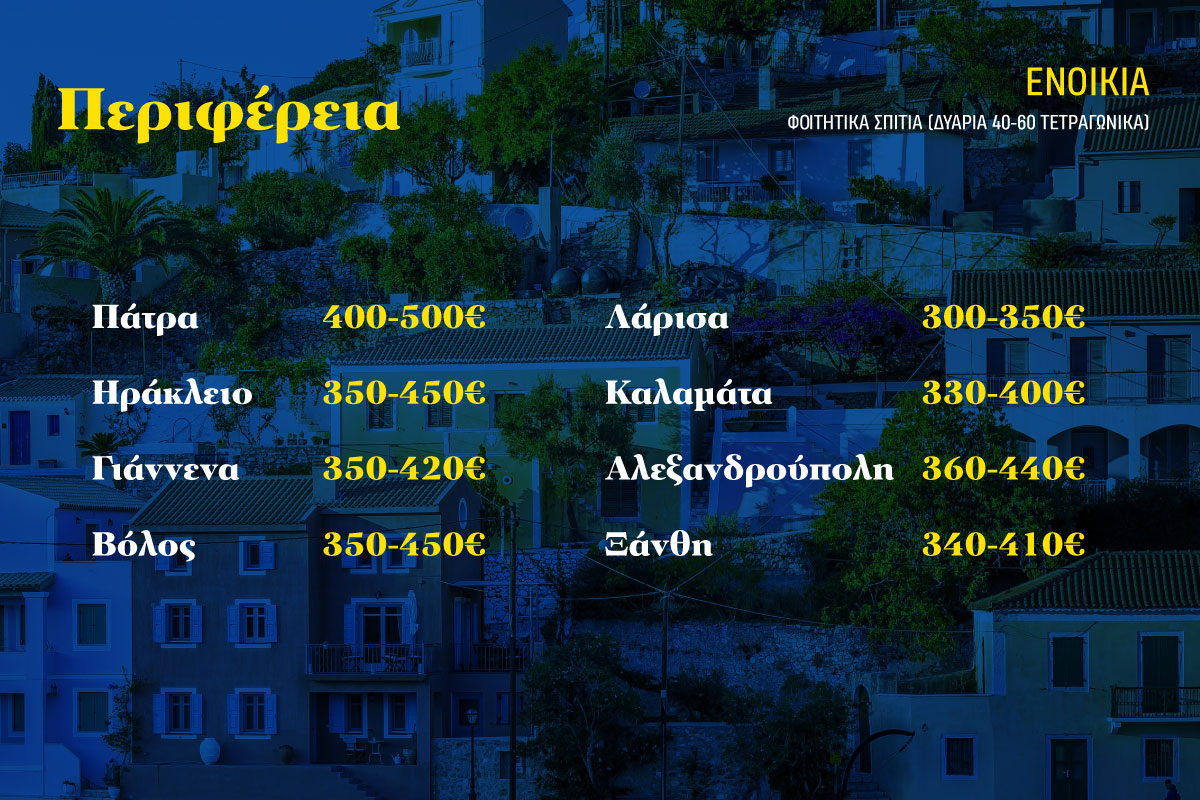 Πού κυμαίνονται τα ενοίκια στις φοιτητικές πόλεις