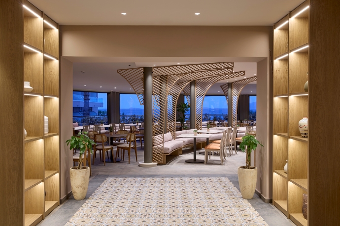 Το πρωί, η μέρα ξεκινάει με έναν πλούσιο μπουφέ με φρέσκα φρούτα, γευστικές πίτες, κέικ και παραδοσιακές λιχουδιές από τοπικά προϊόντα. Φυσικά, το γαστρονομικό ταξίδι συνεχίζεται καθ’ όλη τη διάρκεια της μέρας, τόσο στο κύριο εστιατόριο, όσο και στο εστιατόριο της παραλίας, το Meltemi, που βρίσκεται κυριολεκτικά μια ανάσα από τη θάλασσα, δίπλα σε ένα deck όπου θα βρεις ξαπλώστρες πουφ και ομπρέλες. Το συγκεκριμένο εστιατόριο είναι a la carte και προσφέρει παραδοσιακά ελληνικά πιάτα φτιαγμένα με ολόφρεσκα υλικά, αλλά και live bbq με μια μοναδική θέα στη θάλασσα.