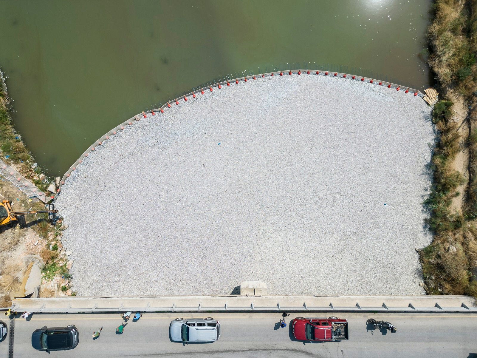 Φωτογραφίες από drone που εικονίζει εκατομμύρια νεκρά ψάρια φερμένα από τη λίμνη Κάρλα να καλύπτουν εντελώς την επιφάνεια του ρέματος Ξηριά στην περιοχή Μπουρμπουλήθρα Βόλου, την Πέμπτη (29/08).