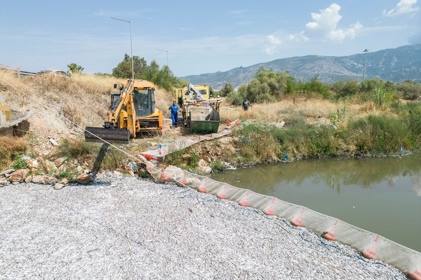 Εξίσου σοκαριστικές είναι οι εικόνες που έρχονται από την περιοχή Μπουρμπουλήθρα στις εκβολές του ρέματος Ξηριά, όπου ο Οργανισμός Λιμένα Βόλου μαζεύει τα νεκρά ψάρια από το προστατευτικό δίχτυ την Τετάρτη (28/08).