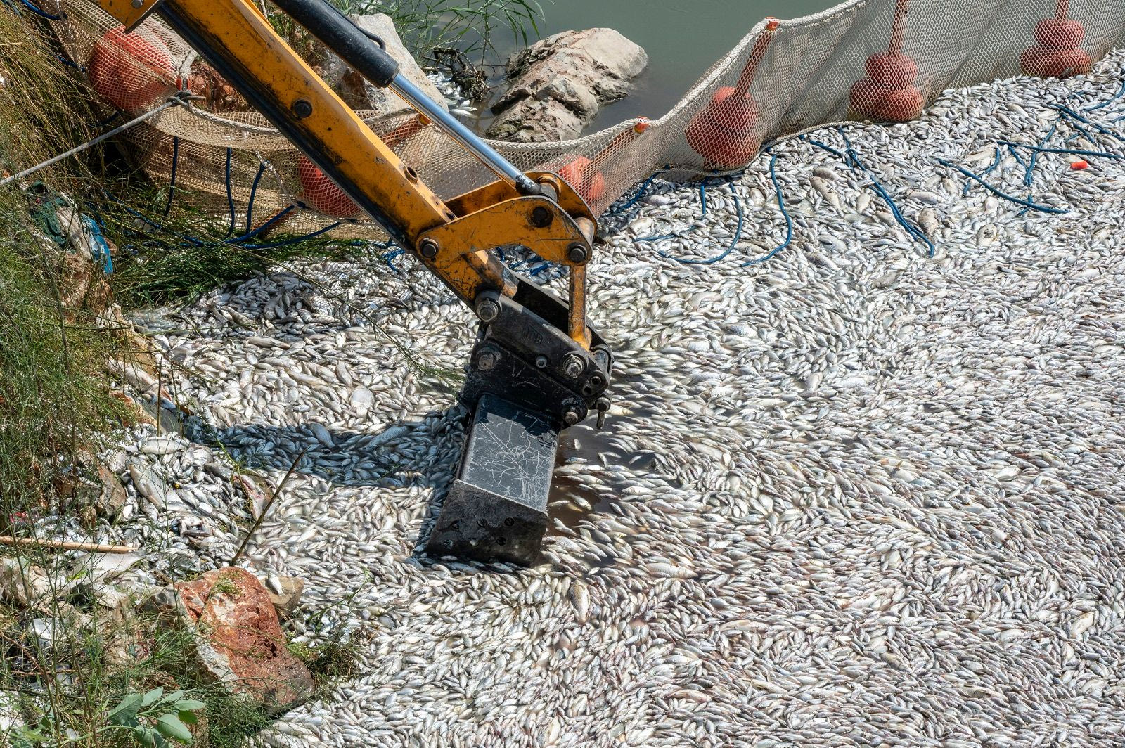 Εικόνες drone αποτυπώνουν την τεράστια καταστροφή με τους τόνους νεκρών ψαριών στη λίμνη Κάρλα και τον ποταμό Ξηριά