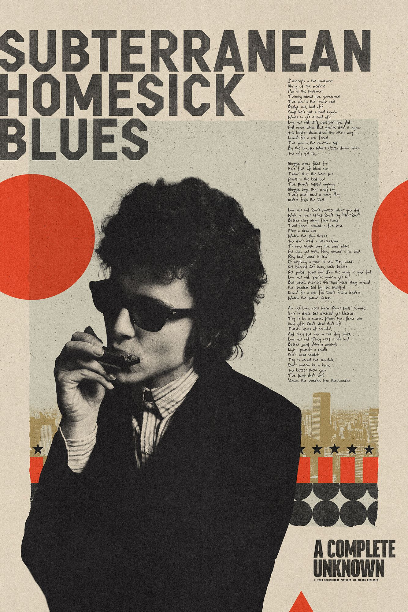 Δεκαεννιά χρόνια μετά το ντοκιμαντέρ No Direction Home του Μάρτιν Σκορσέζε, δεκαεπτά μετά την ταινία μυθοπλασίας I’m Not There του Τοντ Χέινς και πέντε μετά το ντοκιμαντέρ Rolling Thunder Revue επίσης του Σκορσέζε, το A Complete Unknown, το νέο πόνημα του Τζέιμς Μάνγκολντ -διακεκριμένου σκηνοθέτη οσκαρικών ταινιών και εν γένει μερικών από τις πιο πολυσυζητημένες των τελευταίων τριών δεκαετιών (Cop Land, Girl, Interrupted, Walk the Line, Logan, Ford v Ferrari, Indiana Jones and the Dial of Destiny)- πραγματεύεται την κατά πολλούς πιο κρίσιμη περίοδο της ζωής και της καριέρας του Μπόμπ Ντίλαν: από την άφιξή του, με την κιθάρα και το δισάκι του στον ώμο, στο Γκρίνουιτς Βίλατζ της Νέας Υόρκης στην αυγή των 60s μέχρι να «προδώσει», παίζοντας ηλεκτρικά στο θρυλικό φεστιβάλ του Νιούπορτ το 1965, τον Πιτ Σίγκερ και τους υπόλοιπους, καλοπροαίρετους και μη, φολκ ινστρούχτορες που τον είχαν αναδείξει και φυσικά μια σοκαρισμένη μερίδα των οπαδών του.