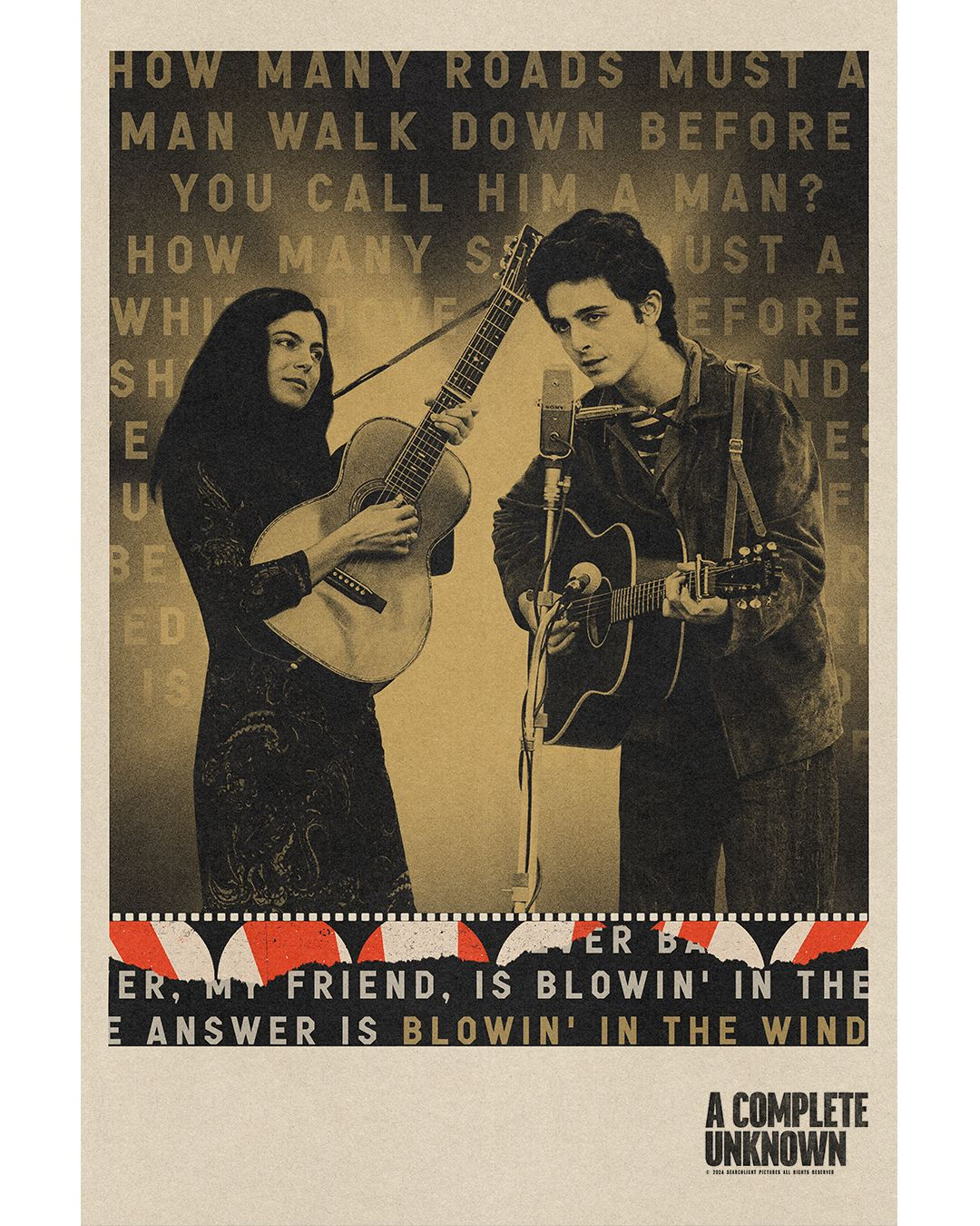 «Υπάρχει μια ταινία για εμένα που θα αρχίσει να προβάλλεται σύντομα με τον τίτλο “A Complete Unknown” (τι τίτλος!). Ο Τίμοθι Σαλαμέ είναι στον πρωταγωνιστικό ρόλο. Ο Τίμι είναι ένας εξαιρετικός ηθοποιός, οπότε είμαι σίγουρος ότι θα είναι απολύτως πιστευτός όπως εγώ. Ή ως ένας νεότερος εαυτός μου. Ή κάποιος άλλος εαυτός μου. Η ταινία βασίζεται στο “Dylan Goes Electric” του Ελάιτζα Γουόλντ, ένα βιβλίο που κυκλοφόρησε το 2015. Είναι μια φανταστική εξιστόρηση γεγονότων από τις αρχές της δεκαετίας του ’60 που οδήγησαν στο φιάσκο του Νιούπορτ. Αφού δείτε την ταινία, διαβάστε το βιβλίο», ανέφερε ο Ντίλαν στις αρχές του περασμένου Δεκεμβρίου σε μια viral ανάρτησή του στο X. Με το δίκιο του ο Σαλαμέ την αναπαρήγαγε για να εκφράσει την ευγνωμοσύνη του. Κάτι που εξακολουθεί να κάνει με κάθε ευκαιρία που του δίνεται, όπως, καλή ώρα, πρόσφατα, οπότε και μετά από την Ελ Φάνινγκ (που υποδύεται τη Σιλβί Ρουσό, δηλαδή τη Σουζ Ροτόλο, όπως είναι το πραγματικό όνομα της συντρόφου του Ντίλαν εκείνα τα χρόνια), τη Μόνικα Μπαρμπάρο (που υποδύεται τη Τζόαν Μπαέζ) και τον σκηνοθέτη του A Complete Unknown, απάντησε στις ερωτήσεις μερικών ακόμη μέσων ενημέρωσης μέσω Zoom. Το NEWS 24/7 ήταν το μοναδικό από την Ελλάδα ανάμεσά τους.