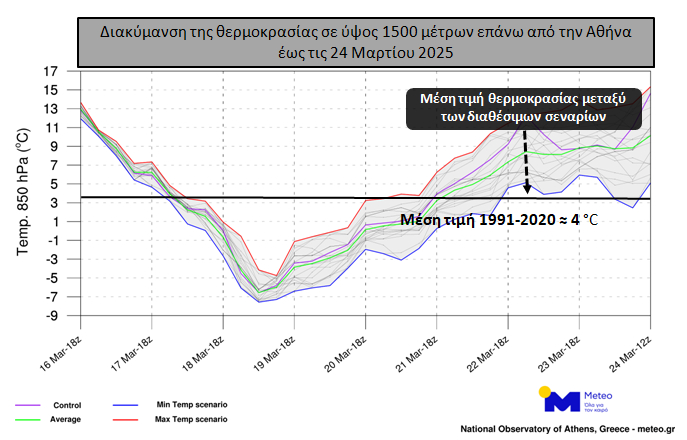 Παρόλα αυτά οι θερμοκρασίες θα παραμείνουν σε χαμηλά για την εποχή επίπεδα την Πέμπτη 20/03 και την Παρασκευή 21/03.
