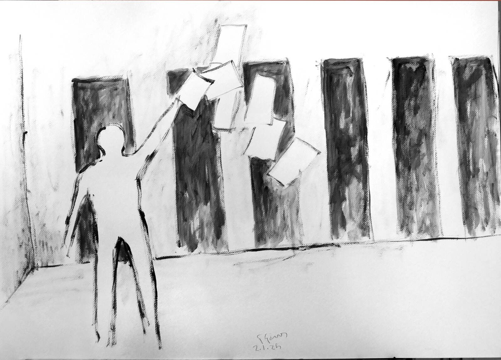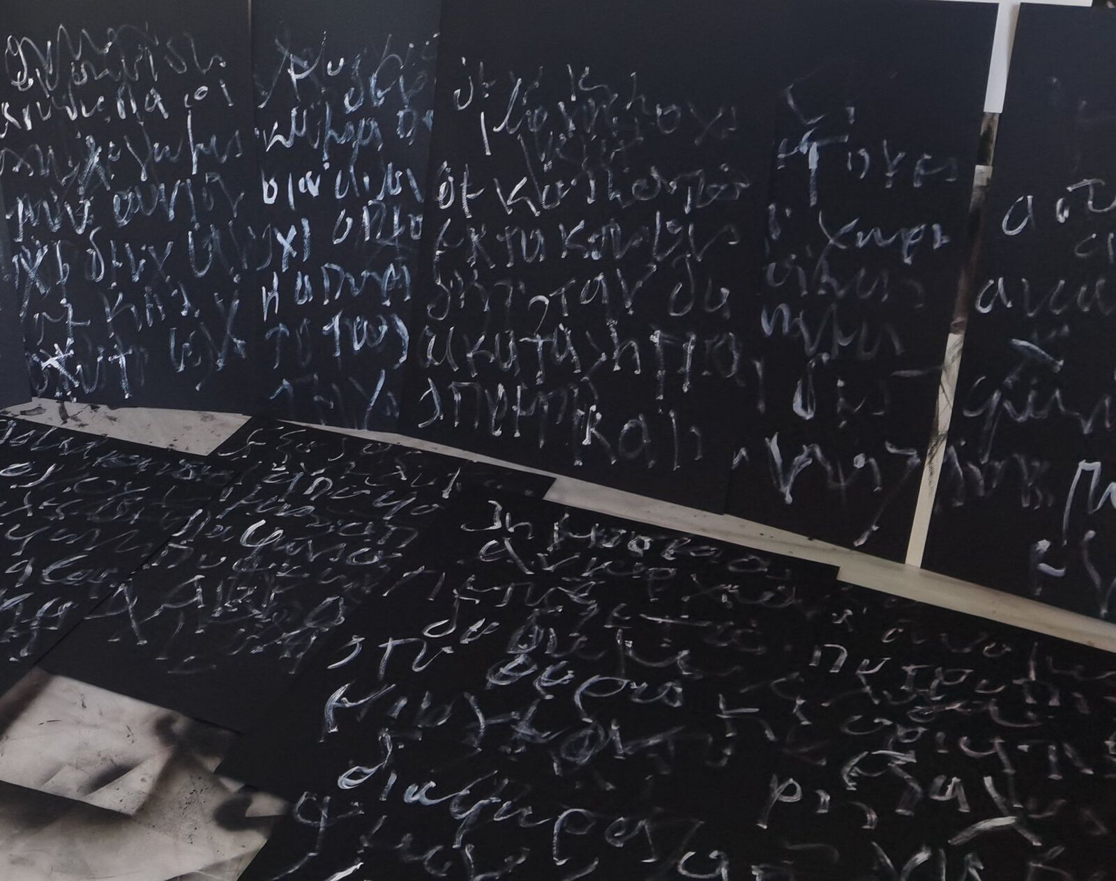 Τα έργα που συμπληρώνουν τις εγκαταστάσεις πραγματεύονται το ίχνος, την εικόνα, τη γραφή και τον πολιτισμό, θέματα που ο καλλιτέχνης ερευνά εδώ και δεκαετίες. Ο καλλιτέχνης εργάζεται με μεγάλες επιφάνειες από χαρτί, χρησιμοποιώντας ακρυλικά και μελάνι. Εγκαίνια: Τετάρτη 23 Απριλίου, 19:00.