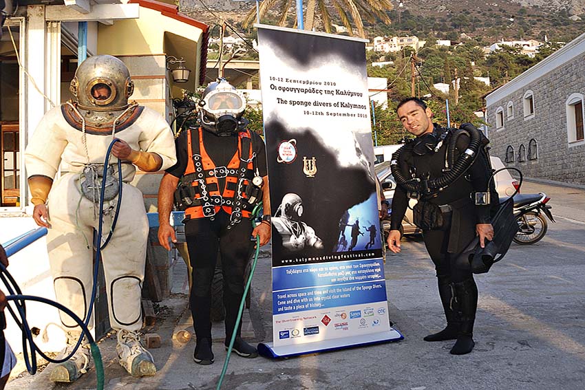 Το “ταξίδι” μας ξεκινάει από τα Δωδεκάνησα και συγκεκριμένα από την Κάλυμνο, γνωστή και ως νησί των σφουγγαράδων, δουλειά των οποίων ήταν η αλιεία, η επεξεργασία και το εμπόριο των σφουγγαριών. Το συγκεκριμένο επάγγελμα άκμασε από τα μέσα του 19ου αιώνα μέχρι τις αρχές του 20ου, κυρίως στην Κάλυμνο και τη Σύμη, αλλά και σε άλλα μέρη. Οι πρώτοι σφουγγαράδες εμφανίστηκαν γύρω στο 1800. Οι πρώτοι δύτες, γνωστοί και ως “βουτηχτάδες”, πραγματοποιούσαν “γυμνή” κατάδυση, χωρίς εξοπλισμό, χρησιμοποιώντας τη “σκανδαλόπετρα”, ένα κομμάτι μάρμαρο, για να κατέβουν πιο γρήγορα στο βυθό.