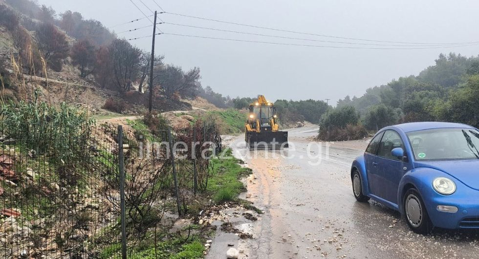 Πλημμυρικά και κατολισθητικά φαινόμενα σε περιοχές της Ζακύνθου λόγω της κακοκαιρίας που πλήττει το νησί.