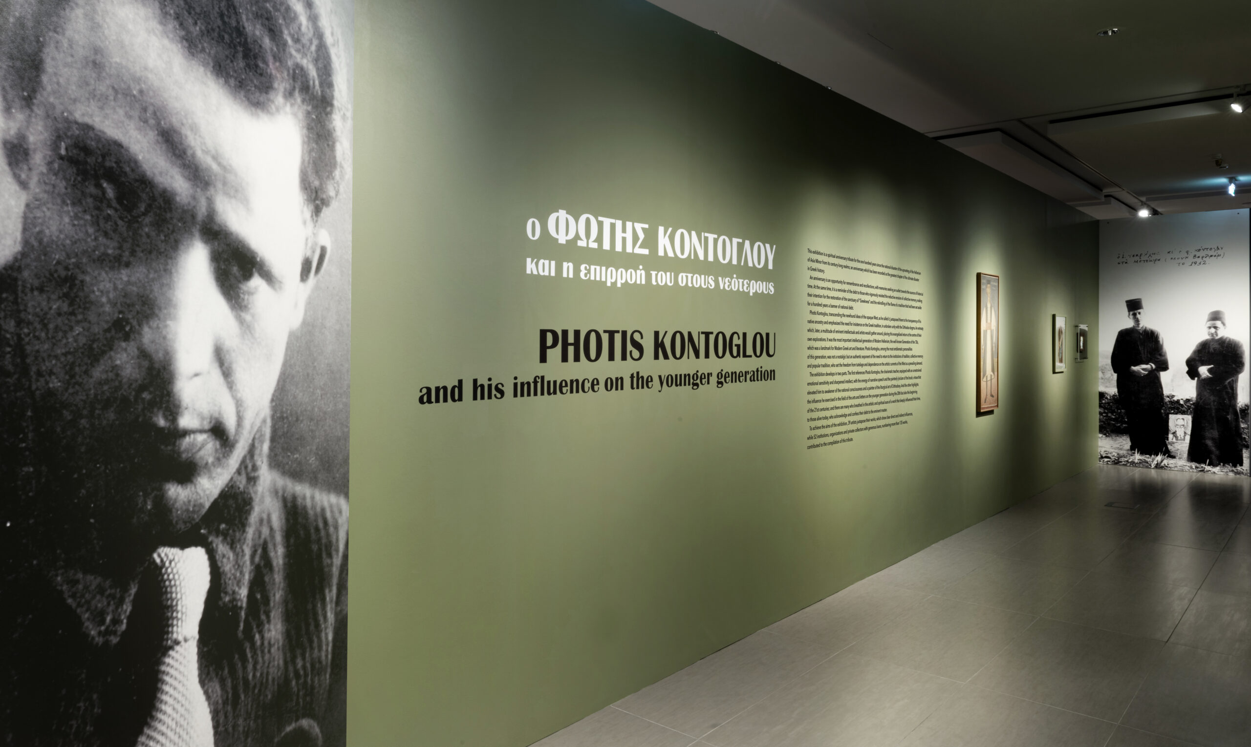 Η έκθεση “Ο Φώτης Κόντογλου και η επιρροή του στους νεότερους” αναπτύσσεται σε δυο σκέλη. Το πρώτο, με άξονα αναφορών του χαρισματικού Φώτη Κόντογλου με την ακατάσχετη συγκινησιακή ευαισθησία, την ενάργεια του αφηγηματικού λόγου, την σχεδιαστική μαεστρία και τον ζωγραφικό λυρισμό του χρωστήρα του ανεδείχθη αφυπνιστής της Εθνικής συνείδησης και της λειτουργικής τέχνης της Ορθοδοξίας. Και από την άλλη, την επιρροή που άσκησε στο πεδίο των εικαστικών τεχνών και τα γράμματα του 20ου αιώνα στους νεότερους.