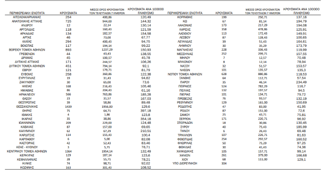 Αναλυτικά η διασπορά των νέων κρουσμάτων σήμερα στην υπόλοιπη Ελλάδα
