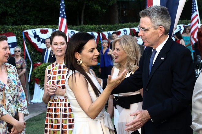 Υπουργοί, βουλευτές και επιχειρηματίες έδωσαν το παρών στην πρεσβεία των ΗΠΑ στην Αθήνα στο πλαίσιο της 4ης Ιουλίου Ημέρας Ανεξαρτησίας των ΗΠΑ.