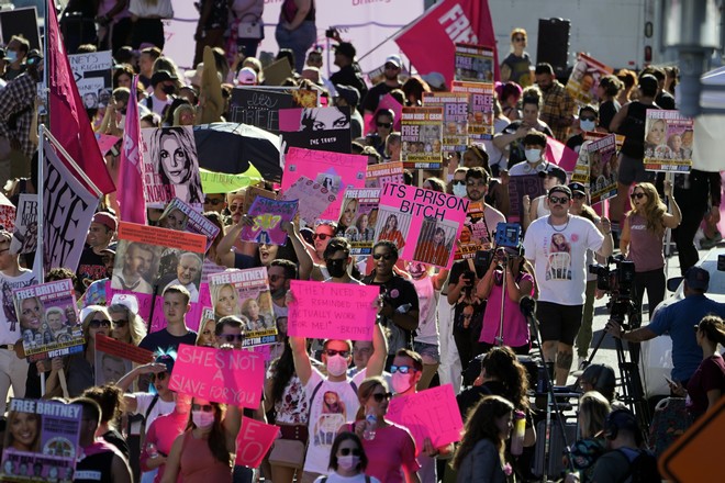 Φανς της Μπρίτνεϊ Σπίαρς πανηγυρίζουν μετά την απόφαση του δικαστηρίου AP Photo/Chris Pizzello