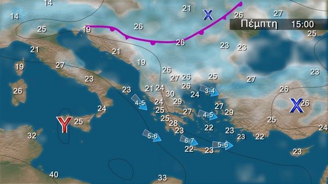 Σήμερα Τρίτη στα βόρεια προβλέπονται τοπικές βροχές και σποραδικές καταιγίδες κυρίως από τις μεσημβρινές ώρες. Τα φαινόμενα στην κεντρική Μακεδονία πιθανώς να είναι κατά τόπους έντονα. Στην υπόλοιπη χώρα θα επικρατήσει γενικά αίθριος καιρός, με τοπικούς όμβρους και μεμονωμένες καταιγίδες στα ηπειρωτικά κυρίως στα ορεινά, τις μεσημβρινές και απογευματινές ώρες. Η ορατότητα στα δυτικά ηπειρωτικά τις πρωινές και βραδινές ώρες θα είναι τοπικά περιορισμένη. Οι άνεμοι θα πνέουν στα δυτικά από δυτικές διευθύνσεις 4 με 6 και στα ανατολικά νότιοι 3 με 5 μποφόρ.