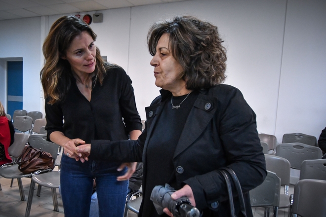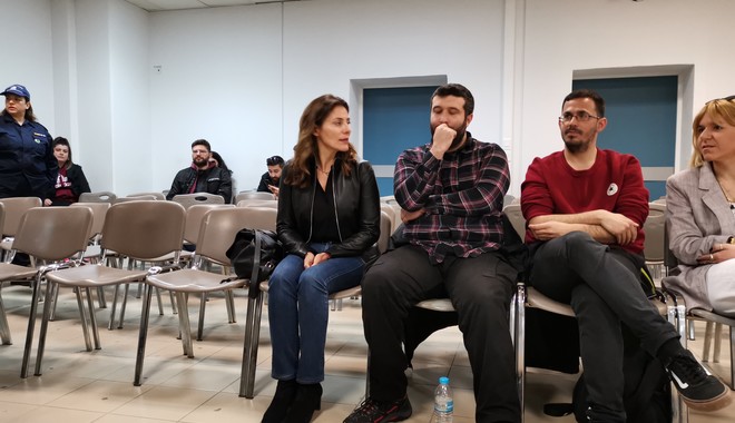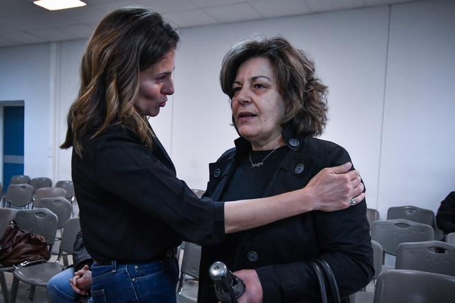 Λίγη ώρα αργότερα στην αίθουσα έφτασε και η Μάγδα Φύσσα. Η Μπέτυ Μπαζιάνα αγκάλιασε και φίλησε την Μ. Φύσσα και της ευχήθηκε κουράγιο, ενώ της είπε ότι θεωρεί ιδιαίτερα σημαντικό το αποτέλεσμα της δίκης. Από την πλευρά της, η Μάγδα Φύσσα ζήτησε από την κα.Μπαζιάνα να επισκεφτεί τις τουαλέτες για να δει την κατάσταση που επικρατεί. Όπως εξήγησε μιλώντας στο News 24/7: “Κατά πως φαίνεται μας επιστρέφουν πάλι εδώ. Οι τουαλέτες είναι πολύ βρώμικες. Πώς μπορούμε να αντέξουμε κάθε μέρα μέχρι τις 3 το μεσημέρι αν δεν μπορούμε να πάμε ούτε τουαλέτα;”