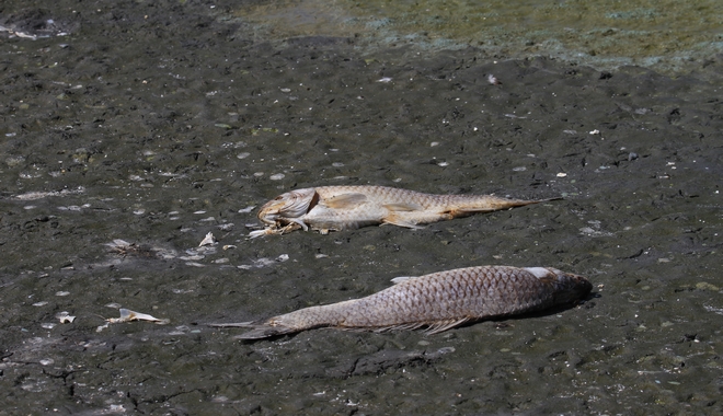 H στάθμη της λίμνης έπεσε δραματικά με αποτέλεσμα την υψηλή θνησιμότητα των ψαριών.