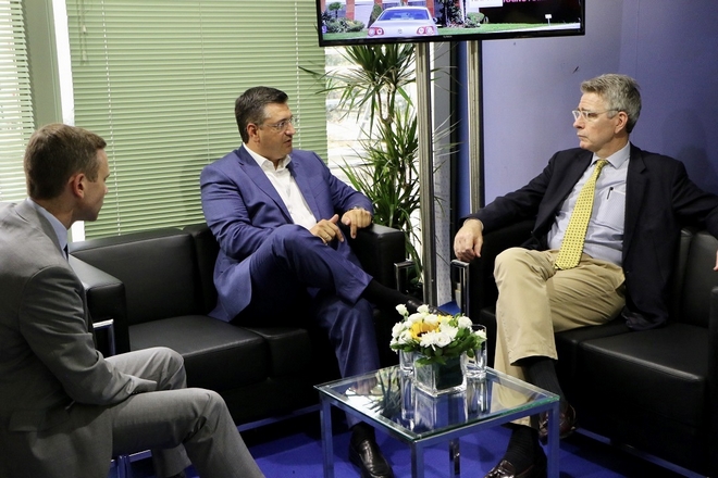 Το περίπτερο της Περιφέρειας Κεντρικής Μακεδονίας επισκέφτηκε ο πρέσβης των ΗΠΑ στην Ελλάδα, Τζέφρι Πάιατ. Συναντήθηκε με τον περιφερειάρχη Απόστολο Τζιτζικώστα και συζήτησαν για ζητήματα ανάπτυξης.