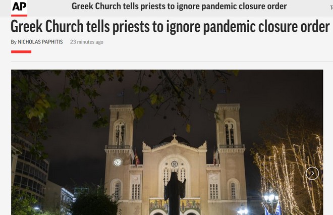 Εκτενείς αναφορές διεθνών ΜΜΕ στην απόφαση της Εκκλησίας της Ελλάδας να ανοίξει τους ναούς για τους πιστούς τα Θεοφάνια.