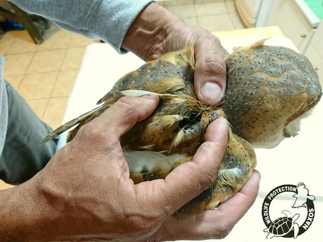 Δρώντας με την λογική «ότι πετάει πυροβολείται» ένας ασυνείδητος στη Νάξο τραυμάτισε σοβαρά ένα σπάνιο νυκτόβιο αρπακτικό που υπάρχει στη Νάξο, ένα Τυτώ (Tyto alba).