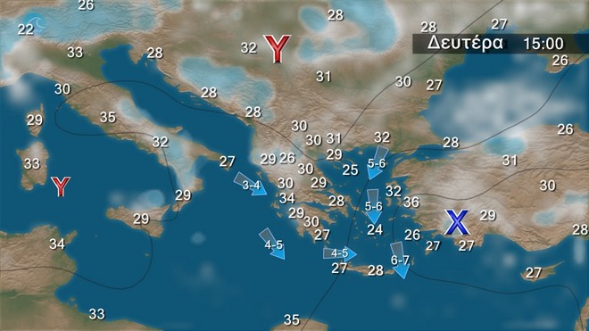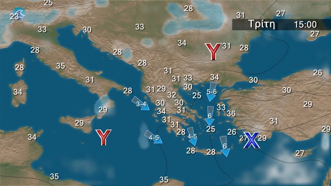 • Οι άνεμοι θα φτάνουν στο Αιγαίο τα 6 με 7 μποφόρ