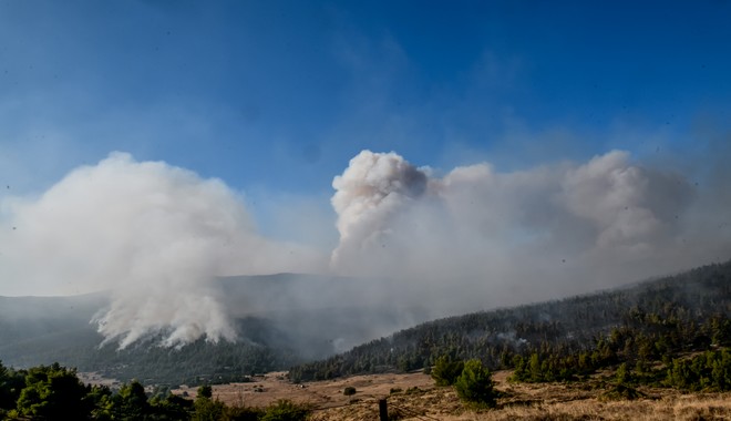 Η άπνοια βοήθησε στην αργή ανάπτυξη της φωτιάς και στην βελτίωση της εικόνας του μετώπου και εξαιτίας αυτού του λόγου ενισχύθηκαν τα εναέρια μέσα σε 32, που επιχείρησαν μέχρι το τελευταίο φως κατά διαστήματα, ώστε να εκμεταλλευτούν από την Πυροσβεστική στο μέγιστο δυνατό τις επιχειρησιακές ώρες με φως που είχαν μπροστά τους και να αντιστρέψουν στο μέτρο του δυνατού την αδυναμία προσέγγισης επίγειων δυνάμεων στα δύσβατα εδάφη που επεκτείνεται η φωτιά.