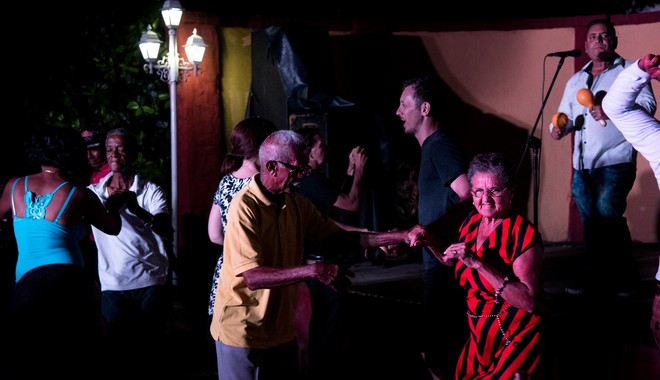 Η ώρα ήταν εξαιρετικά περασμένη για να είσαι στην Κούβα και να μην έχεις πιει τουλάχιστον ένα κοκτέιλ με ρούμι. Το σούρουπο είχε αρχίσει να μαυρίζει τα χρωματιστά σοκάκια που μυρίζουν αποχέτευση, όταν μπήκαμε στο πρώτο μπαρ που βρέθηκε μπροστά μας. Είχε το πολύ δέκα άτομα, με τα πέντε να δουλεύουν εκεί. Ήταν ήσυχο αλλά γουστόζικο. Παραγγείλαμε μερικές πίνες κολάδες και καθίσαμε στην μπάρα. Μία μπάντα ξεκίνησε το τραγούδι της. Χαλαρά, ήσυχα. Δευτερόλεπτα αργότερα, χορεύαμε με τον τραγουδιστή με τη δυνατή φωνή χωρίς μικρόφωνο (γενικά, στις κουβανέζικες μπάντες σπάνια θα συναντήσεις μικρόφωνο). Στροφές, βήματα, λικνίσματα των γοφών. Και δώστου χορός και δώστου μαράκα να σιγοντάρει στο γλέντι. Όλα αυτά έγιναν ξαφνικά. Από το πουθενά.