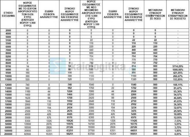 Όπως προκύπτει, ειδικότερα, από αναλυτικό πίνακα που δημοσιεύουν τα dikaiologitika.gr, τυχόν εφαρμογή της πρότασης αυτής του ΔΝΤ και της Παγκόσμιας Τράπεζας θα έχει τα ακόλουθα αποτελέσματα: