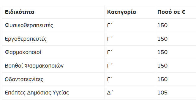 Επιπλέον, εντάσσονται ως νέοι δικαιούχοι εργαζόμενοι των νοσοκομείων αρκετών ειδικοτήτων, όπως είναι οι παρακάτω: