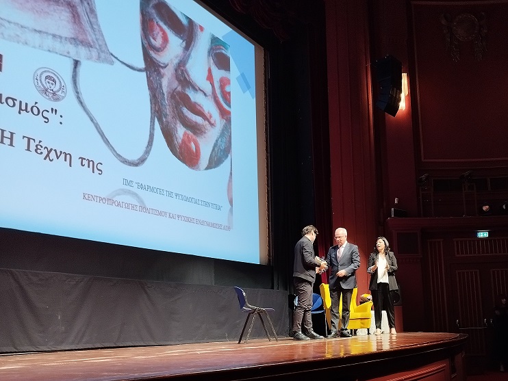 «Με τις δημιουργίες σας πραγματικά μπορείτε να συνεισφέρετε στην αλλαγή συμπεριφοράς και στάσεων της κοινωνίας», είπε ο Κοσμήτορας Σχολής Επιστημών Υγείας ΑΠΘ Θεόδωρος Δαρδαβέσης στον Χριστόφορο Παπακαλιάτη, βραβεύοντάς τον για το ρόλο του στην ανάδειξη ευαίσθητων ψυχοκοινωνικών θεμάτων.