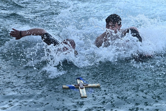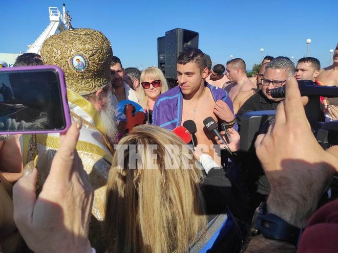 Σύμφωνα με το GRTimes.gr, τον Σταυρό στην τελετή καθαγιασμού των υδάτων έπιασε ο 39χρονος Μιχάλης Αποστολίδης, μάλιστα για 18η φορά, δηλώνοντας περήφανος.
