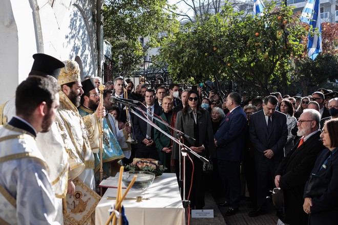 Παρουσία του δημάρχου Αθηναίων, Κώστα Μπακογιάννη, ο οποίος συνοδευόταν από ένα από τα παιδιά του, τελέστηκε η τελετή αγιασμού των υδάτων στο κέντρο της Αθήνας ανήμερα των Θεοφανείων.