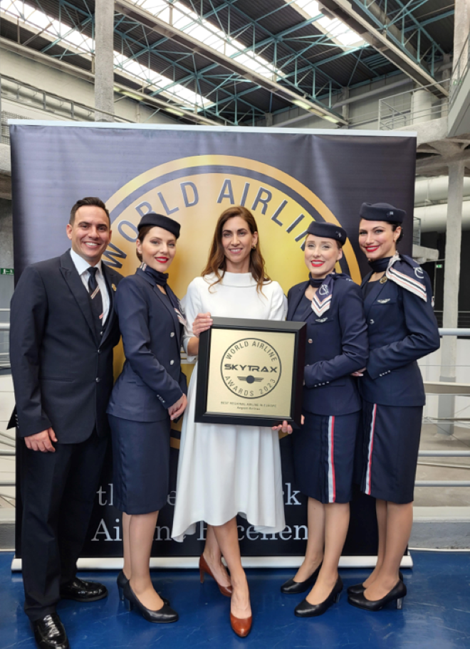 Η κατ κατακτά τον τίτλο της «Καλύτερης Περιφερειακής Αεροπορικής Εταιρείας στην Ευρώπη» στα Skytrax World Airline Awards 2023, που ανακοινώθηκαν φέτος σε ειδική εκδήλωση στο πλαίσιο του εντυπωσιακού Paris Air Show. η AEGEAN βρίσκεται μεταξύ των καλύτερων αεροπορικών εταιρειών για το πλήρωμα καμπίνας της, κατακτώντας την 4η θέση στην κατάταξη για το «Καλύτερο Πλήρωμα Καμπίνας στην Ευρώπη».
