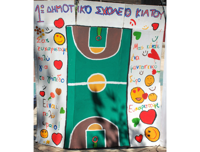 Η bwin και η Ένωση «Μαζί για το Παιδί» δημιούργησαν με μεράκι, υπερηφάνεια και αγάπη, ένα νέο σχολικό γήπεδο στο Κιάτο και τα χαμόγελα των παιδιών ήταν η μεγαλύτερη ανταμοιβή. Τα εγκαίνια έγιναν στις 9 Ιουνίου, με τα έργα να έχουν ολοκληρωθεί στις Πασχαλινές διακοπές των μαθητών.