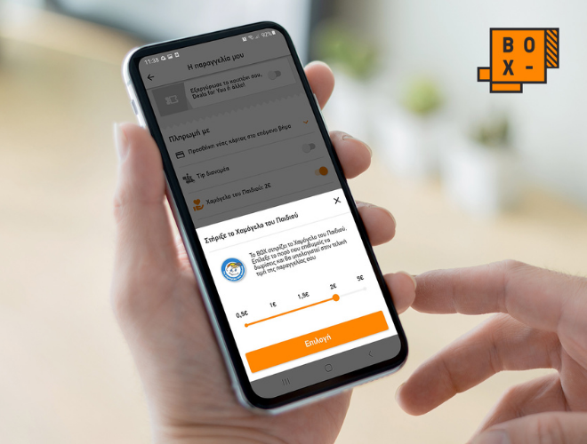 Το ΒΟΧ συνεχίζει να στέκεται δίπλα στον Οργανισμό «Το Χαμόγελο του Παιδιού», δίνοντας στους πελάτες του τη δυνατότητα με κάθε παραγγελία να προσφέρουν ένα χρηματικό ποσό στον Οργανισμό, που μετρά 26 χρόνια προσφοράς δίπλα σε κάθε ευάλωτο παιδί και οικογένεια. Με αυτό τον τρόπο καλύπτονται οι βασικές ανάγκες σίτισης στα 14 Κέντρα Στήριξης Παιδιού και Οικογένειας σε όλη την Ελλάδα. Με κάθε παραγγελία από το ΒΟΧ (για φαγητό, καφέ, ψώνια από τα supermarket Μασούτης και Κρητικός), οι πελάτες της πλατφόρμας μπορούν να προσφέρουν στον Οργανισμό «Τo Χαμόγελο του Παιδιού» 0,5€, 1€, 1,5€, 2€ ή 5€, αρκεί να επιλέξουν πληρωμή με κάρτα. Το ποσό αυτό θα υπολογιστεί στην τελική τιμή της παραγγελίας τους. Γιατί «μια παραγγελία βοηθά να χορτάσουν περισσότεροι».
