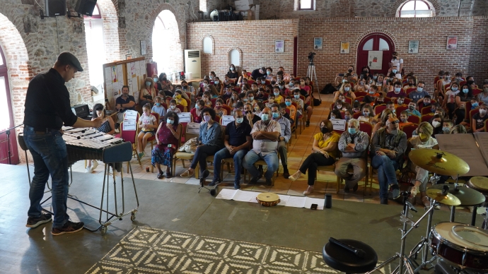 Στο δεύτερο στάδιο όλοι οι φιλοξενούμενοι μουσικοί από τα σχολεία συμπράττουν σε μία