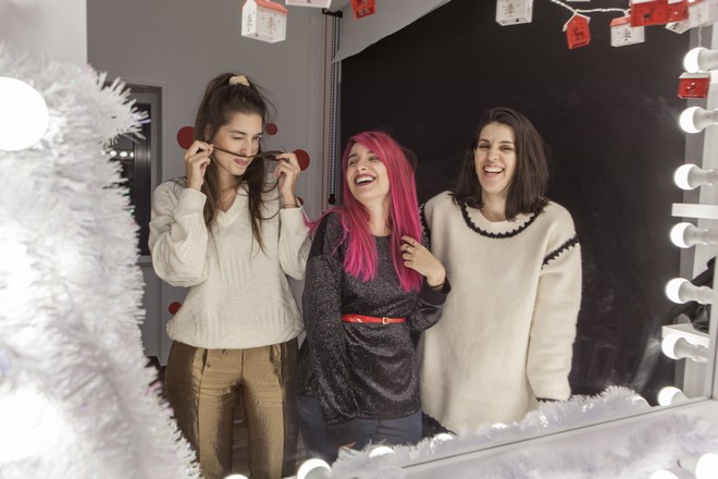 Κάποια στιγμή, κατά τη διάρκεια της βραδιάς, στο σαλόνι μείναμε μόνο άνδρες. Με ζωγραφισμένη στα πρόσωπά μας την απορία “πού πήγαν οι γυναίκες”, ανακαλύψαμε πως είχε στηθεί ένα make-up workshop στο beauty room του House Twenty Four, για εκείνες που ήθελαν να δοκιμάσουν ένα διαφορετικό, γιορτινό make-up. Και η αλήθεια είναι πως λίγο έλειψε να κλέψουν τη λάμψη του δέντρου.