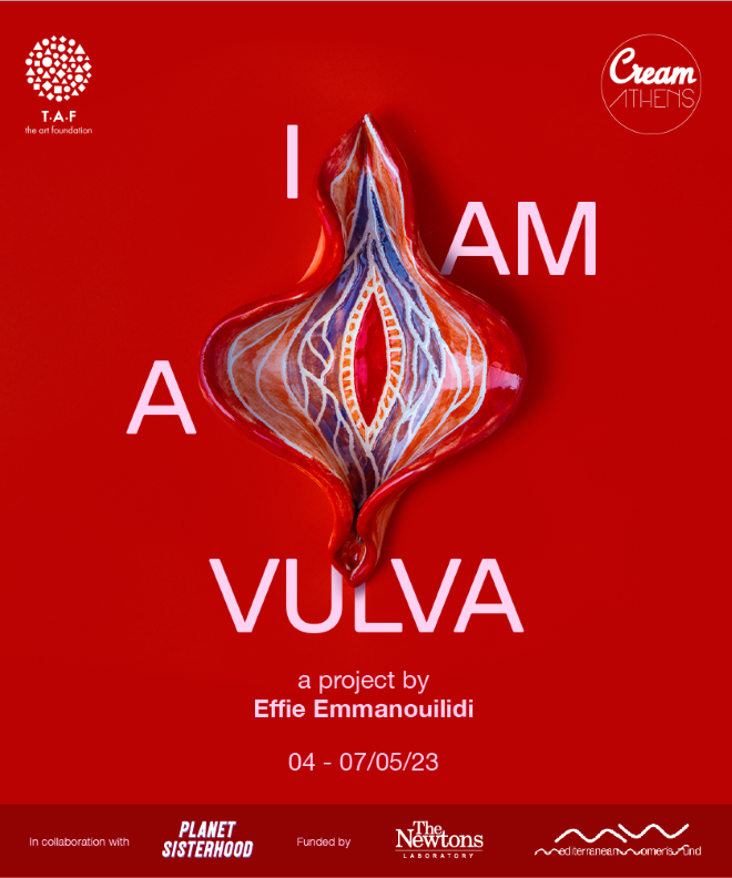 Το Cream Athens παρουσιάζει το project I AM A VULVA της εικαστικού Έφης Εμμανουηλίδη σε συνεργασία με την καλλιτεχνική της κολεκτίβα Planet Sisterhood, το οποίο πραγματοποιείται στο TAF, The Art Foundation, στο Μοναστηράκι από την Πέμπτη 4 Μαϊου 2023 έως την Κυριακή 7 Μαΐου 2023.