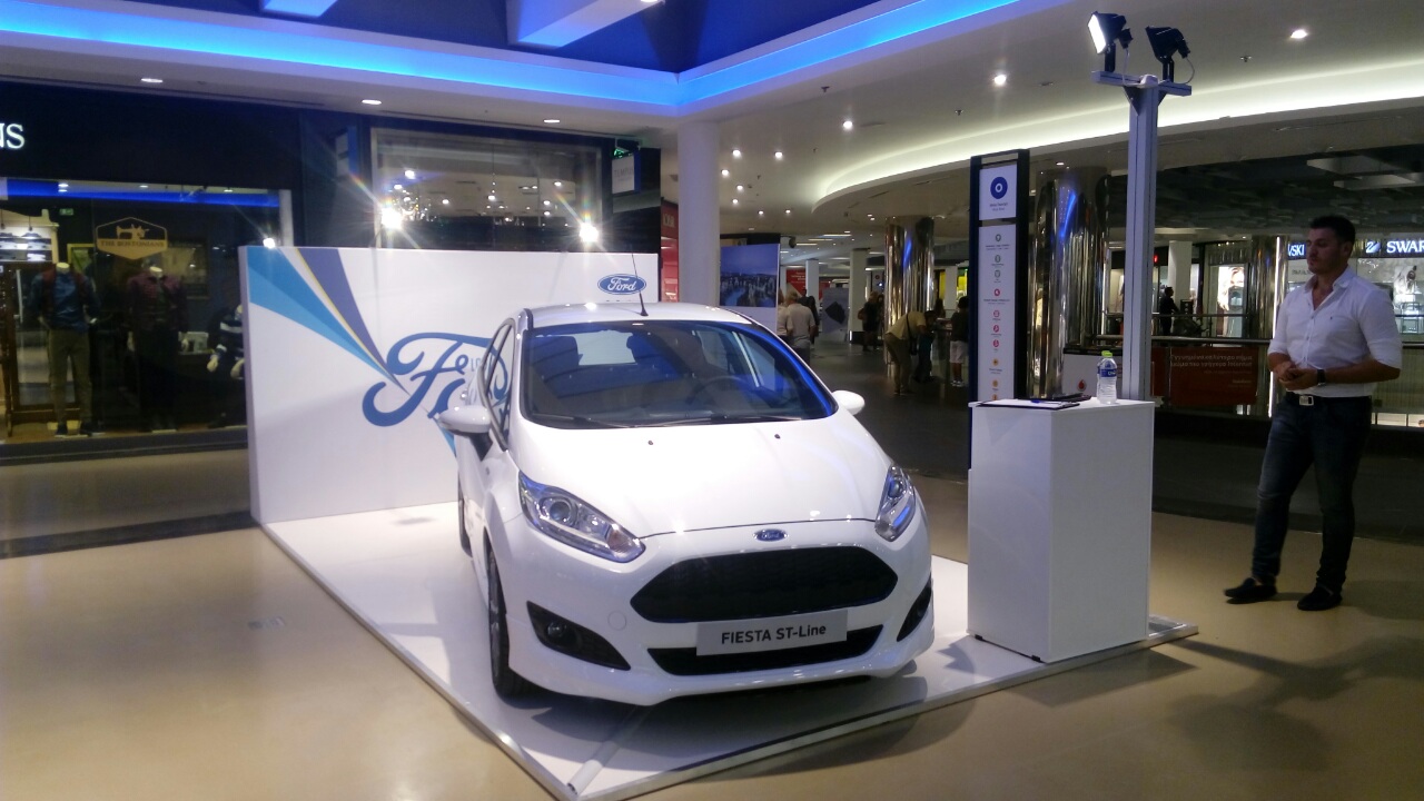 Αρχικά, και μέχρι τις 14 Οκτωβρίου, στον 1ο όροφο του πιο πολυσύχναστου εμπορικού κέντρου της Θεσσαλονίκης, θα εκτίθεται η νέα έκδοση ST-Line του Ford Fiesta. Με σπορ εμφάνιση και κινητήρες χαμηλού κυβισμού, όπως ο πολυβραβευμένος χιλιάρης κινητήρας βενζίνης 1,0L EcoBoost αλλά και ο αποδοτικός 1,5L Diesel, τα νέα Fiesta ST-Line συνδυάζουν ιδανικά το δυναμικό στυλ με την οικονομία καυσίμου.