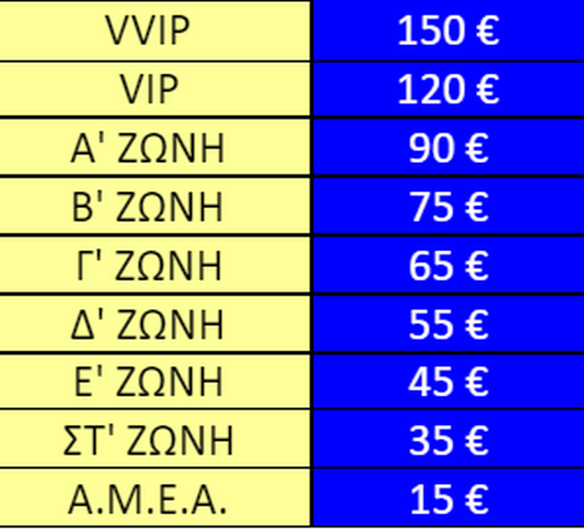 ΤΙΜΕΣ ΕΙΣΙΤΗΡΙΩΝ