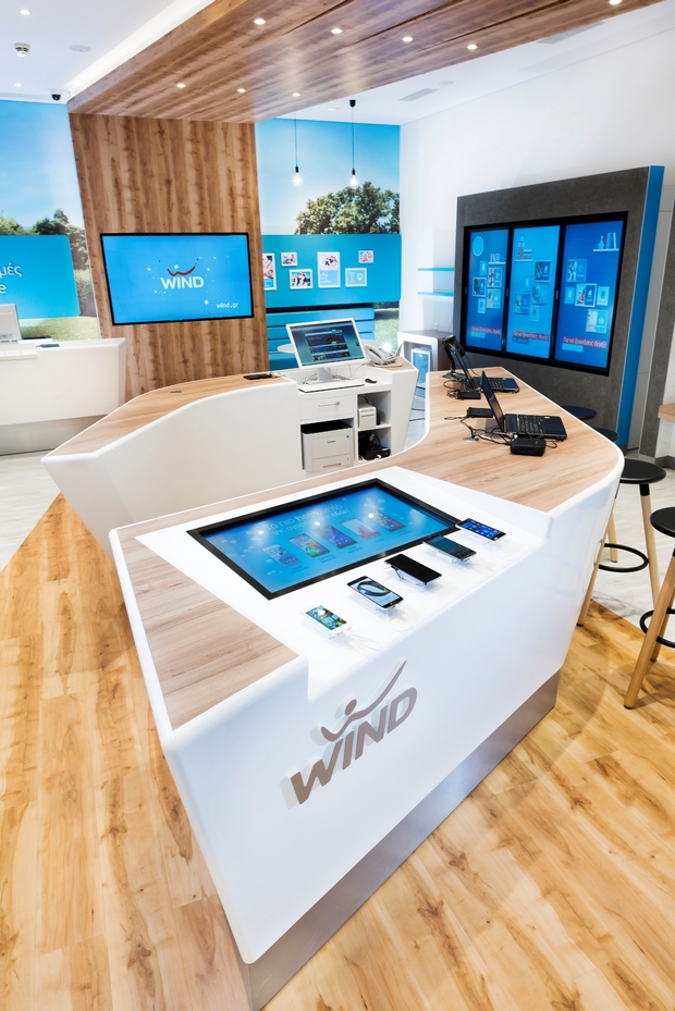 Στα νέα καταστήματα WIND ο λειτουργικός σχεδιασμός και η τεχνολογία συναντούν την υψηλή αισθητική. Μέσα από διαδραστικές οθόνες αφής και το ειδικό λογισμικό που έχει δημιουργήσει η WIND, ο επισκέπτης εξερευνά και προσωποποιεί τις επιλογές του στην κινητή, τη σταθερή και το Internet σε κάθε πιθανό συνδυασμό ή συγκρίνει live τις συσκευές που τον ενδιαφέρουν. Μια καινοτομία που παρουσιάζεται για πρώτη φορά στην Ελληνική Αγορά. Παράλληλα κάθε σημείο του καταστήματος φιλοξενεί smartphones και tablets τελευταίας τεχνολογίας ώστε ο επισκέπτης να τα ανακαλύψει ζωντανά την ίδια στιγμή, να πλοηγηθεί και να τα συγκρίνει.