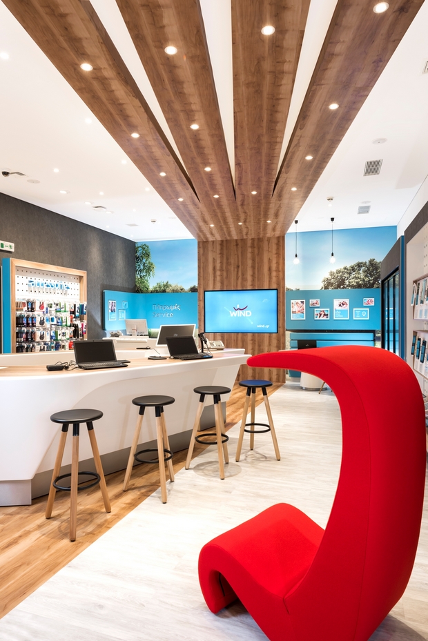 Η αρχιτεκτονική των νέων καταστημάτων WIND φέρει την υπογραφή του μεγαλύτερου διεθνούς γραφείου εξειδίκευσης στο brand & retail design, την Allen International. Έχει δημιουργηθεί ένας άκρως οικείος χώρος που κάθε επισκέπτης τον νιώθει ως δικό του. Οι χώροι και οι λειτουργίες του καταστήματος είναι σχεδιασμένοι ώστε να καθοδηγούν τον πελάτη σε αυτό που τον ενδιαφέρει αλλά και να τον φιλοξενούν για όσο το επιθυμεί ενώ ο ίδιος αισθάνεται άνετα σαν να βρίσκεται στο σπίτι του.