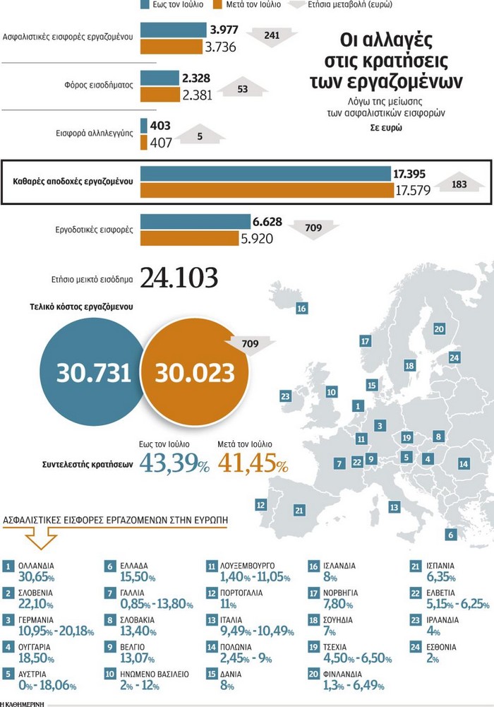 Η Ελλάδα παραμένει στο μπλοκ των χωρών με ιδιαίτερα αυξημένους συντελεστές ασφαλιστικών εισφορών και συγκεκριμένα στην έκτη θέση των χωρών του ΟΟΣΑ. Κάτι τέτοιο σε συνδυασμό με την οικονομική κατάσταση στην οποία βρίσκονται τα ταμεία, αλλά και το σκηνικό στην περίθαλψη γεννά ακόμη περισσότερα ερωτηματικά για το συνθήκες κάτω από τις οποίες λειτουργεί η δημόσια υγεία (στις εισφορές περιλαμβάνεται φυσικά και συνταξιοδοτική εισφορά, ένα άλλο πικραμένο κεφάλαιο της ασφάλισης).