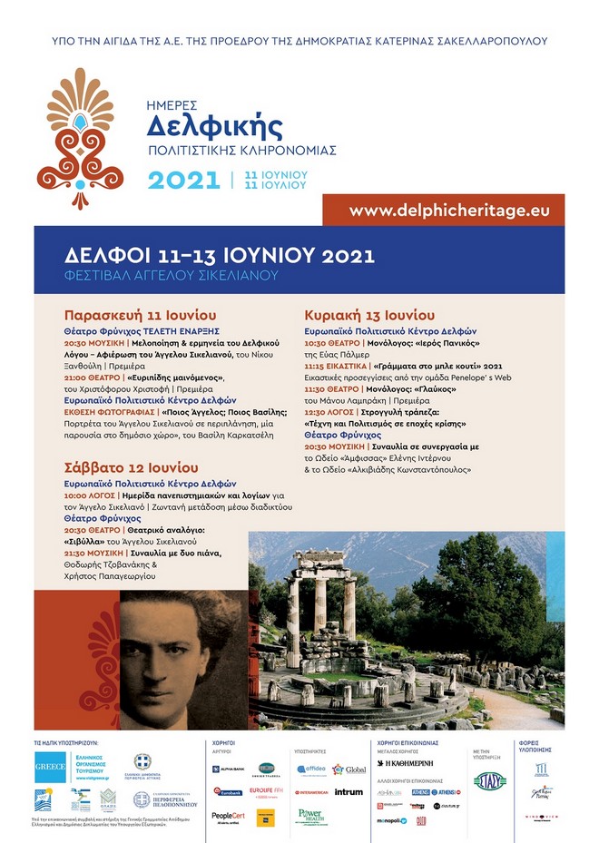 Οι Ημέρες Δελφικής Πολιτιστικής Κληρονομιάς 2021 θα διεξαχθούν από τις 11 Ιουνίου έως και τις 11 Ιουλίου 2021 σε έξι περιοχές όπου έζησε και έδρασε ο ποιητής: Δελφούς, Συκιά, Λευκάδα, Σαλαμίνα, Αίγινα και Αθήνα. H είσοδος θα είναι ελεύθερη για το κοινό.