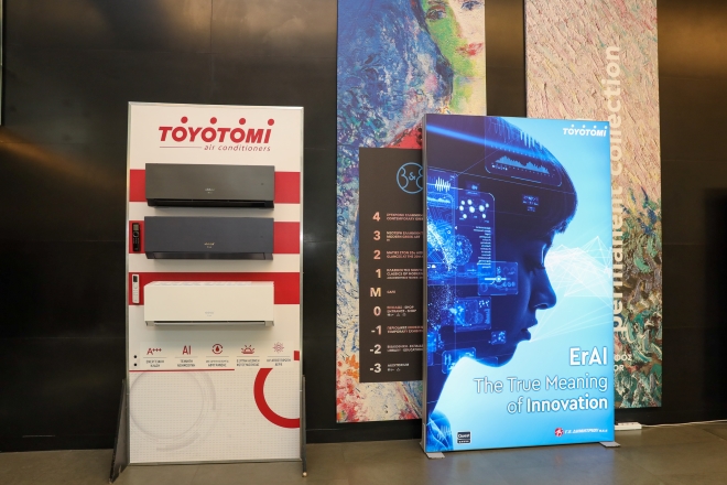 Με μεγάλη επιτυχία και τη συμμετοχή εκπροσώπων ΜΜΕ και στελεχών του συνόλου της αγοράς Ηλεκτρικών και Ηλεκτρονικών Συσκευών, παρουσιάστηκε το Toyotomi ErAI All DC Inverter, η πρώτη σειρά οικιακών κλιματιστικών με ενσωματωμένη τεχνολογία Τεχνητής Νοημοσύνης (ΑΙ).